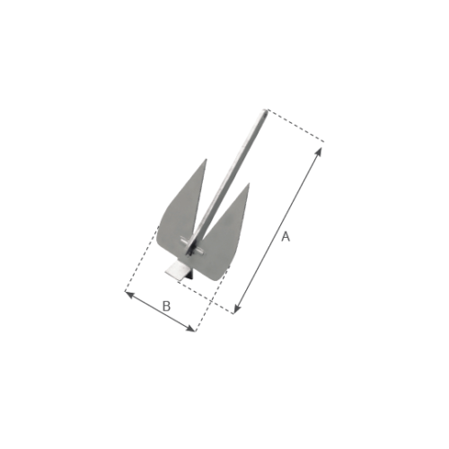 La Britany in acciaio zincato ultraresistente è la sola ancora piatta senza cassa di articolazione, per cui non presenta nessun rischio di bloccaggio del fuso dovuto ad intasamento per melma o sassi, inoltre assicura una presa istantanea.